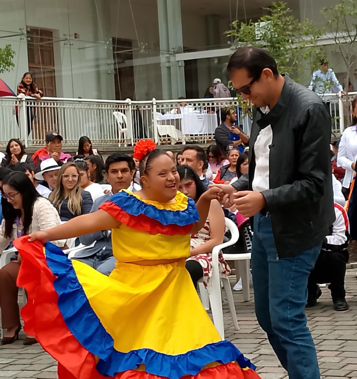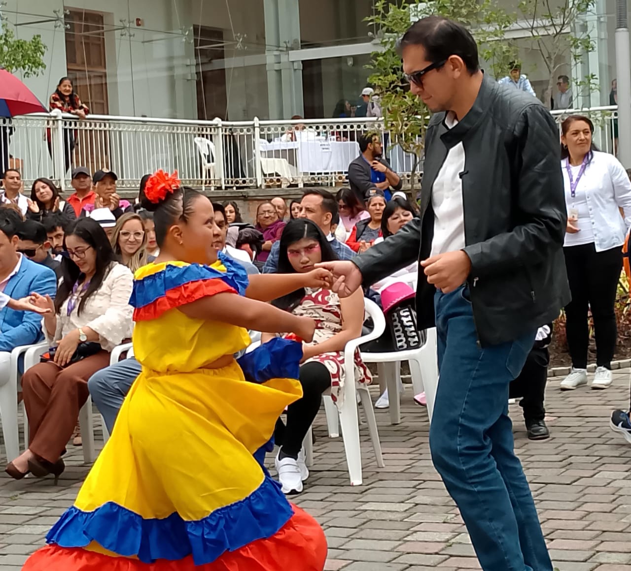 El ministro Harold Burbano felicitó a los participantes y compartió el baile con ellos, resaltando el valor del arte como herramienta de inclusión. FINESEC agradece al Ministerio por fomentar espacios que promueven la empatía, la creatividad y la participación de todas las personas.